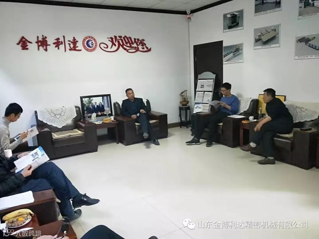 3月14日,山西网架集团领导到访金博利达公司洽谈订购网架钢构生产所需的钢球加工、管材自动加工、焊接自动化等设备,客户首先观看了公司宣传视频,随后双方就各自公司情况进行了介绍。客户对我公司所展现出来的综合实力表示了肯定。