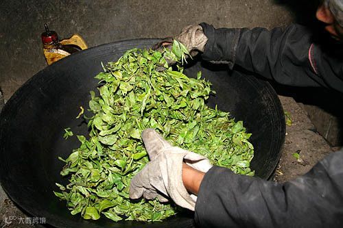 短暂进行高温处理,去除茶叶中过高的水分,以软化茶叶,这个过程便是杀青。