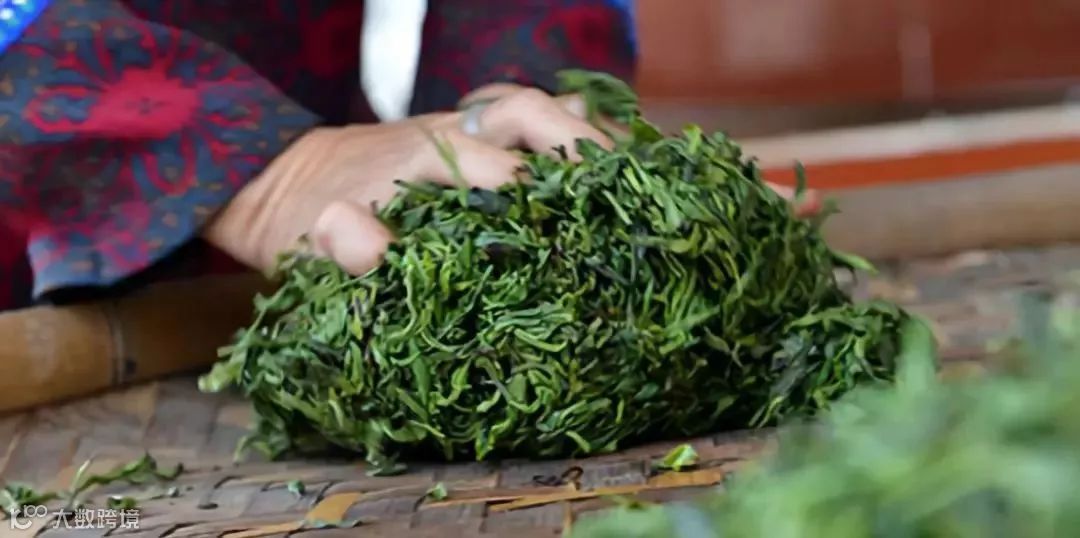 将成片的茶叶搓成条索状,为之后的步骤做准备。