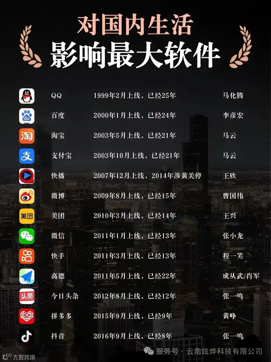 惊!这些软件的影响力惊人,改变中国人生活;最早的软件距今已经25、6年的历史;随着不同软件的兴起,也代表着互联网从社交、搜索、电商、支付、资讯、娱乐到本地生活的演进过程,影响国人生活方方面面;