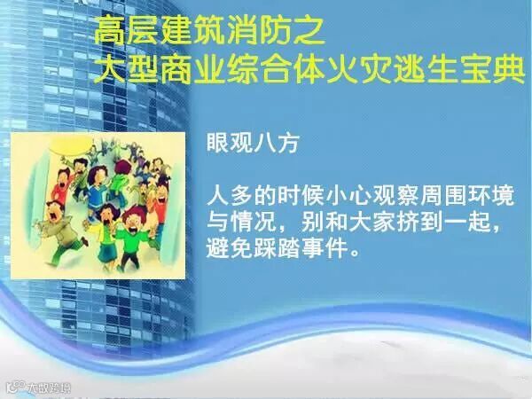最后,来看看下面这则网络上的消防安全教育片带给你的启示吧:留意商场内的消防设施,正确逃生自救!