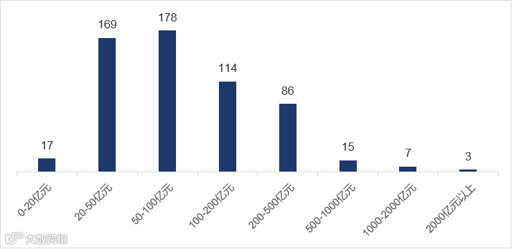 2025年8月31日,科创板589家公司A股市值合计达 9.34万亿元,平均数158.60亿元,中位数72.75亿元。科创板200公司市值超过百亿,15家公司市值超过500亿元,7家公司市值超过1000亿元,其中3家公司市值超过2000亿元。