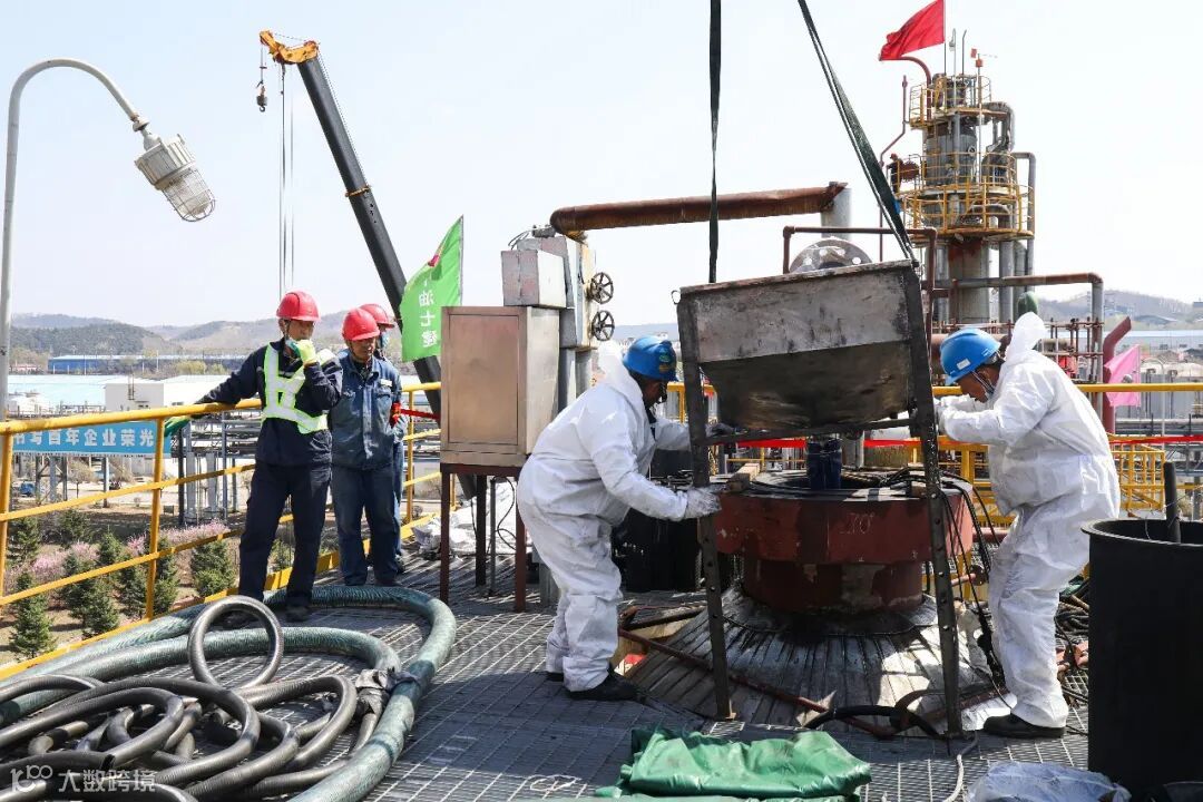 4月20日下午,石油一厂20万吨/年高压加氢装置核心设备第一反应器R201和第二反应器R202催化剂装填工作顺利完成。此次装填催化剂共计39.92吨,累计耗时10天。施工现场全程配有专人监护和记录,施工人员克服催化剂板结、极端天气等不利因素,按统筹时间如期完成。