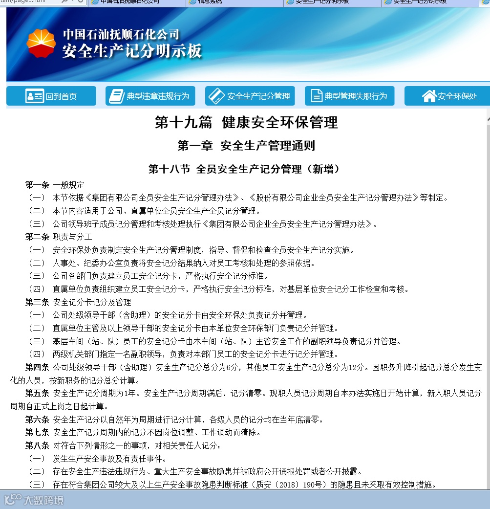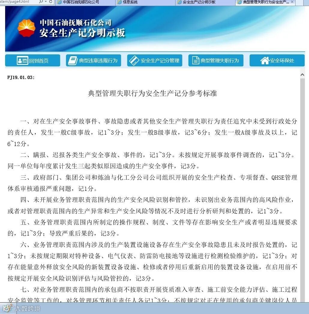 日前,抚顺石化公司“安全生产记分管理系统”正式上线运行,这标志着《全员安全记分管理》制度率先在抚顺石化落地生根,系统的上线运行实现了为基层减负,做到了信息公开、透明。