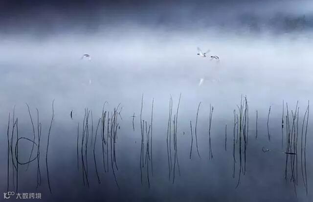 摄影在许多场合需要做合理的减法,而留白技术的运用是减法的具体体现之一,这在雾景拍摄中尤为明显。留白,即摄影画面上除了看得见的实体对象之外的一些空白部分,它们是由单一色调的背景所组成,形成实体对象之间的空隙。单一色调的背景可以是雾气、天空、水面、草原、土地或者其它景物,由于运用各种摄影手段的原因,它们已失去了原来实体对象,而在画面上形成单一的色调来衬托其它的实体对象。