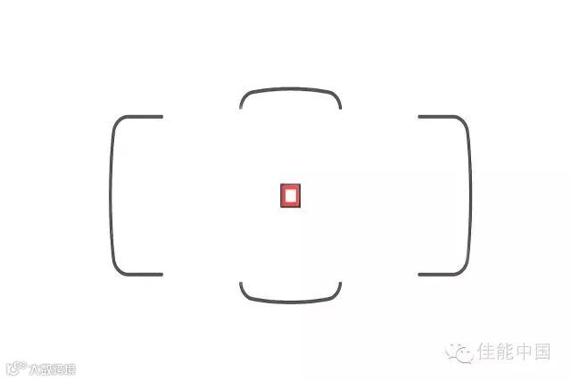 此时在取景框里,我们看到的是中心一个初始对焦点,外面是上下左右两个大括号: