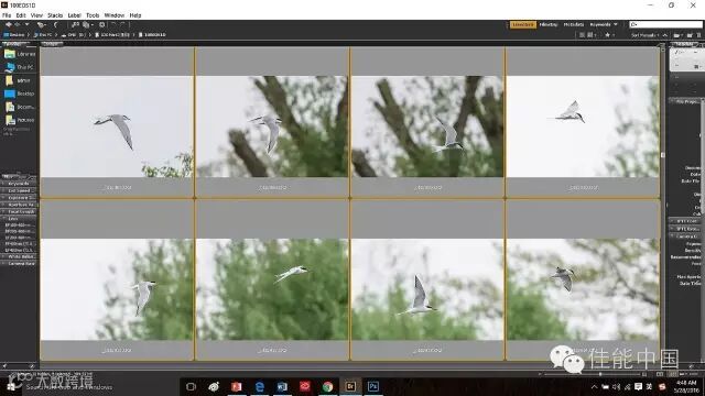 下面这组8连拍的片子,第一张初始对焦点对上燕鸥后,我一直压着AF-ON按钮跟拍。由图可见,即使第2、3、5、7、8背景里出现对比度极强的干扰线条,而燕鸥也不在初始对焦点上(中心点),EOS-1D X Mark II还是轻松地动员它所有的61个点来紧紧抓住燕鸥而没有跑焦。