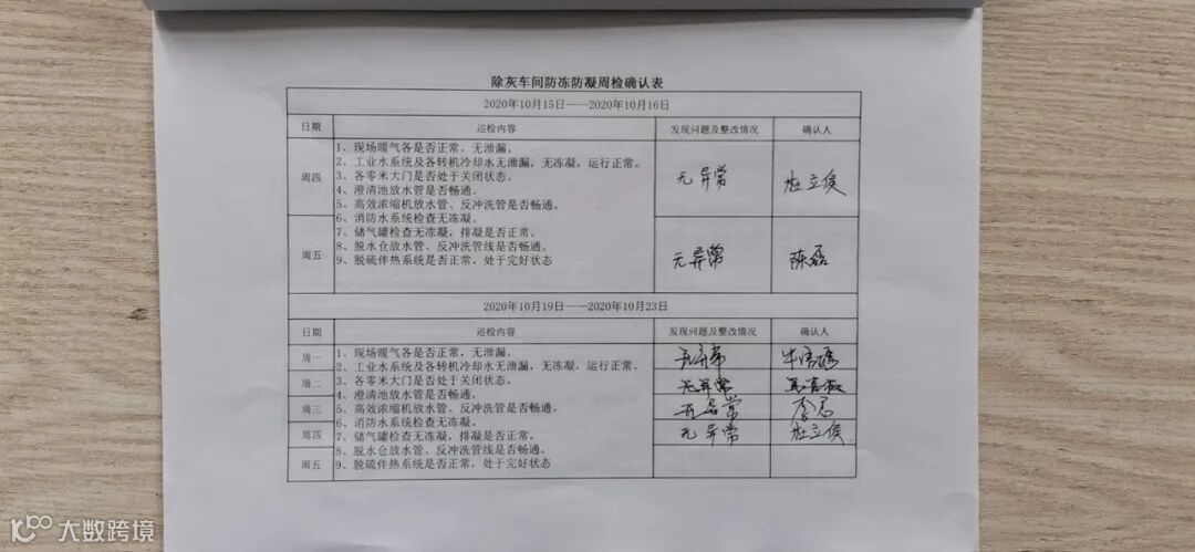 车间在现场设置了管理人员巡检签到簿和冬季“三防”巡检签到簿,要求大家把在巡检过程中遇到的问题及时记录并处理。