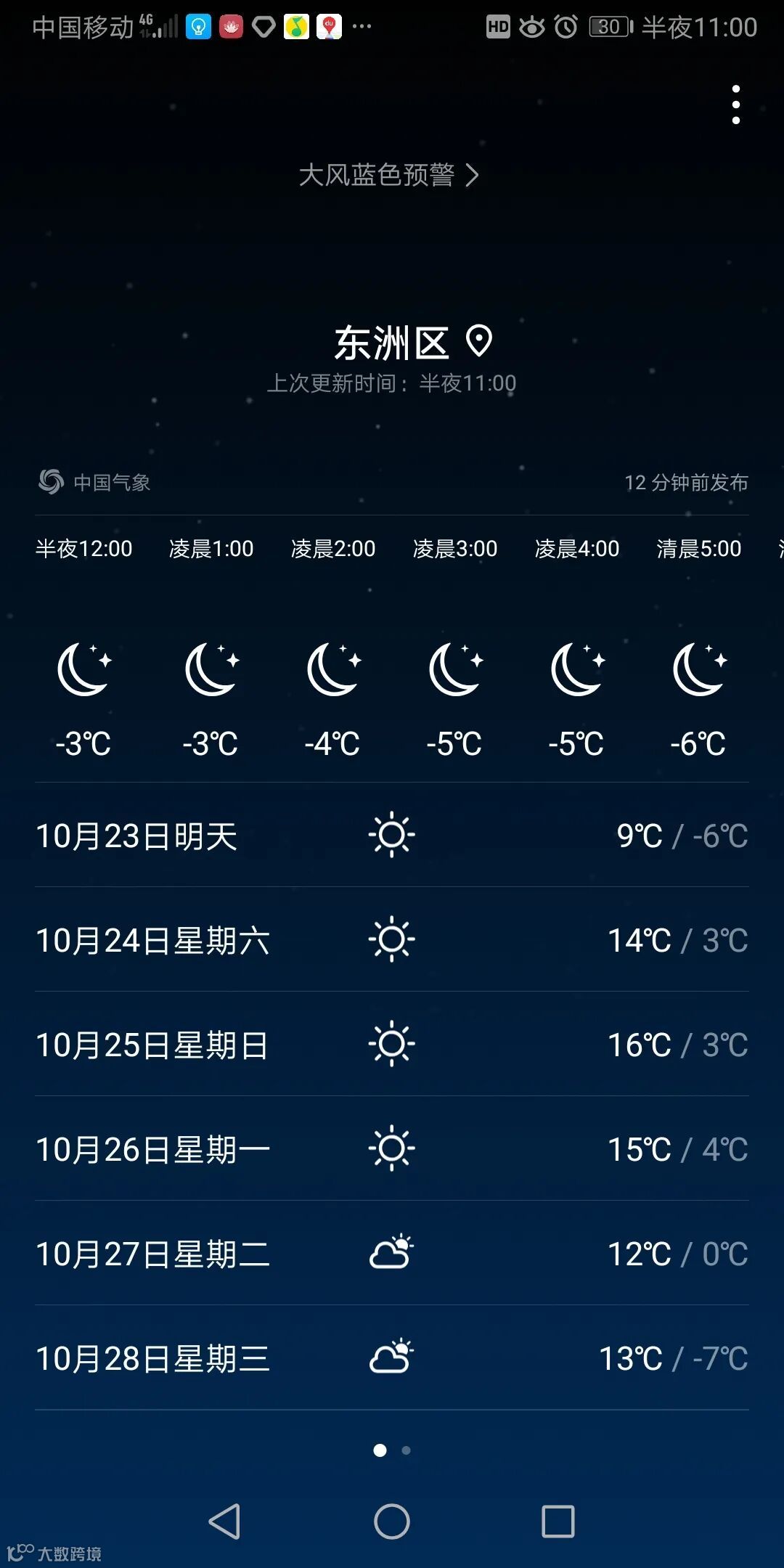 看着手机上的天气预报
