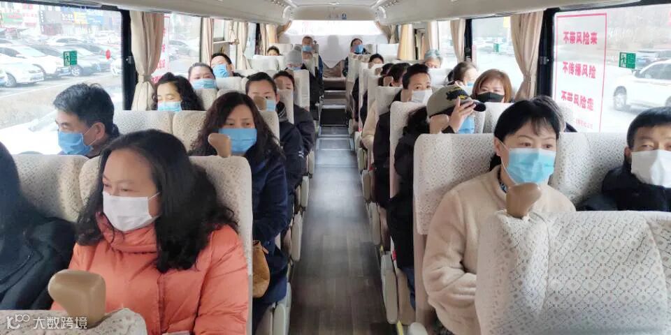 “请规范佩戴口罩,按顺序乘车,途中不要随意摘掉口罩。”驾驶辽DA0503通勤车的驾驶员,打开车门后温馨提示每一位乘车员工。
