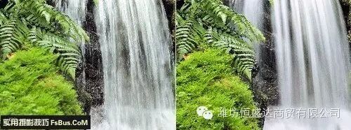 左图是用1/20秒拍摄,而右图是用1/2秒,可见快、慢快门速度可对某些题材产生不同的视觉效果。