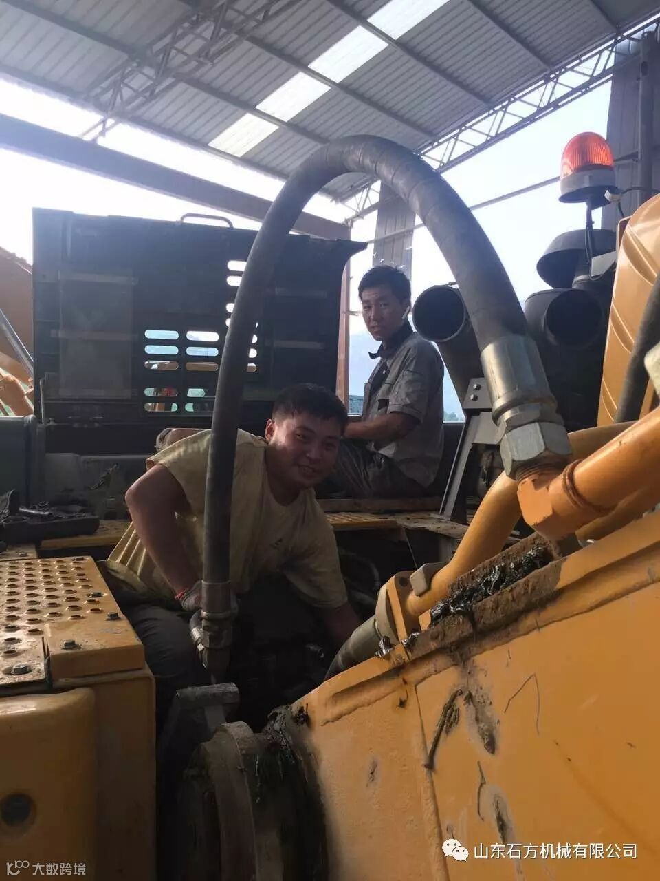 山东石方机械有限公司·章丘分公司服务技师正在认真的维修