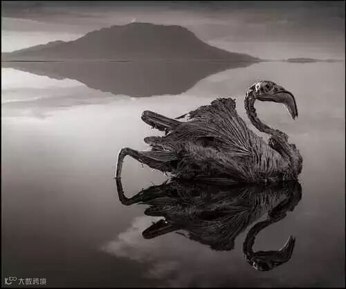 由于湖水碱性极高,死亡动物被钙化之后,凝固成为天然的动物石像。