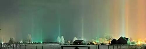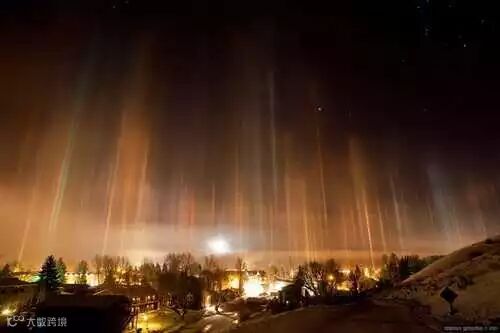 在极其寒冷的地区,比如俄罗斯,因为冰晶反射光而产生的奇观。