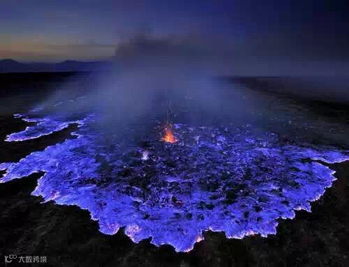 只有印度尼西亚爪哇岛的卡瓦伊真火山存在。熔岩本身并不是蓝色,只是在温度高于360°时,高纯度的硫燃烧发出蓝色。