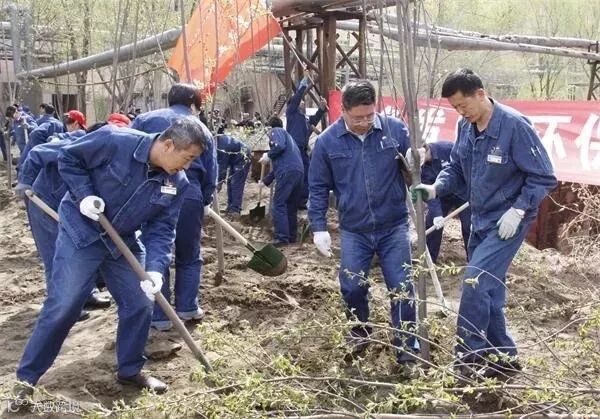 4月22日,腈纶厂组织机关各党支部党员在毛条车间北侧4号路附近开展了义务植树活动。