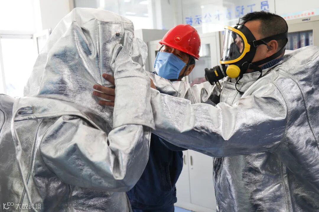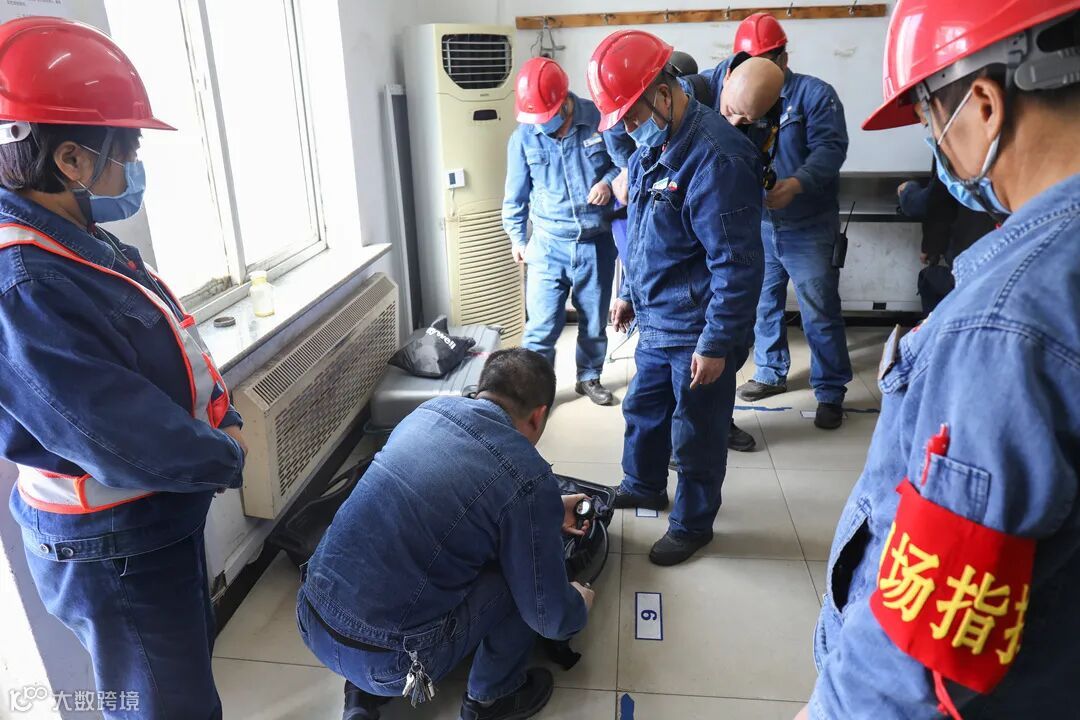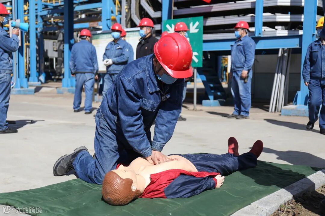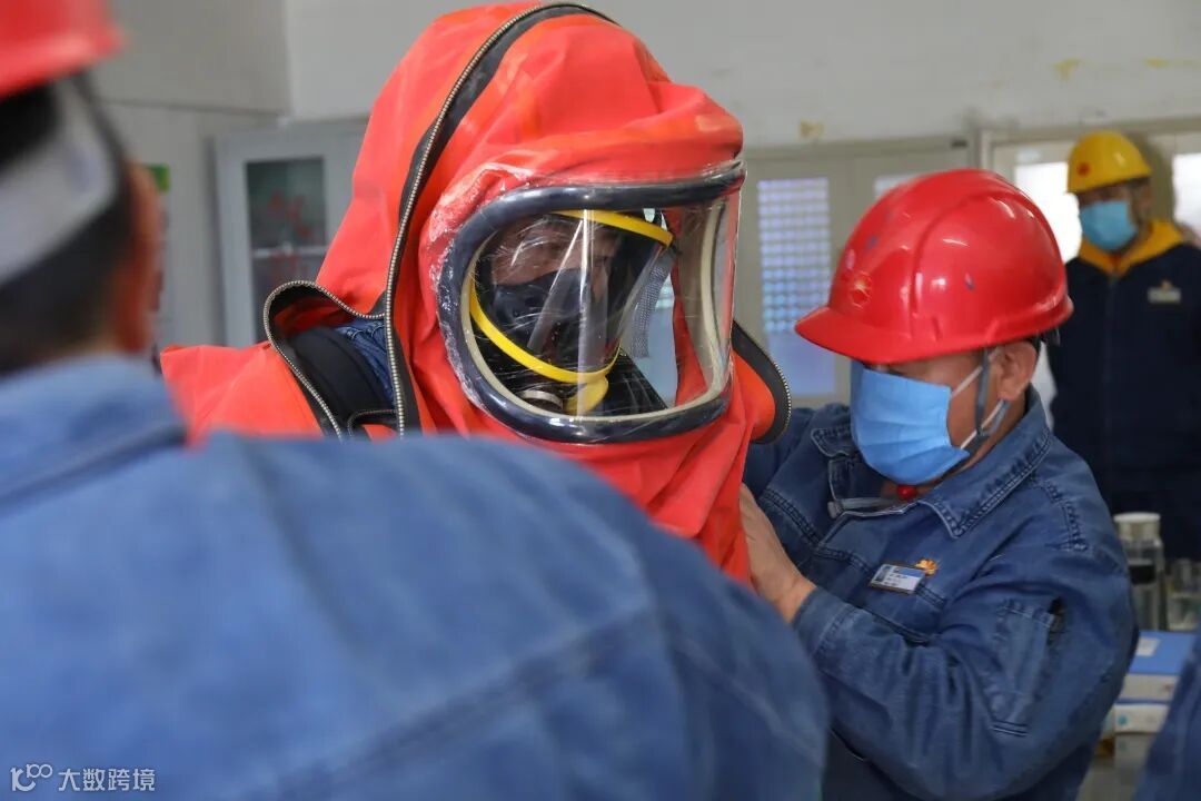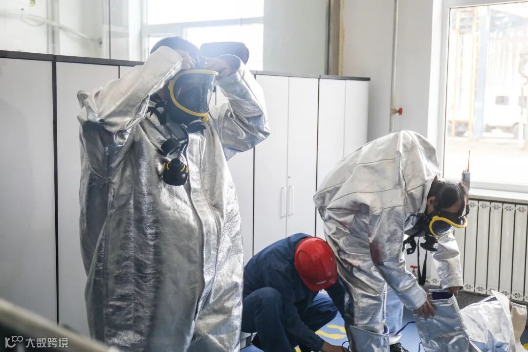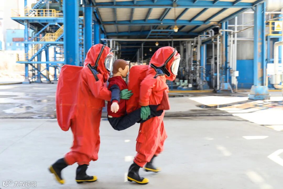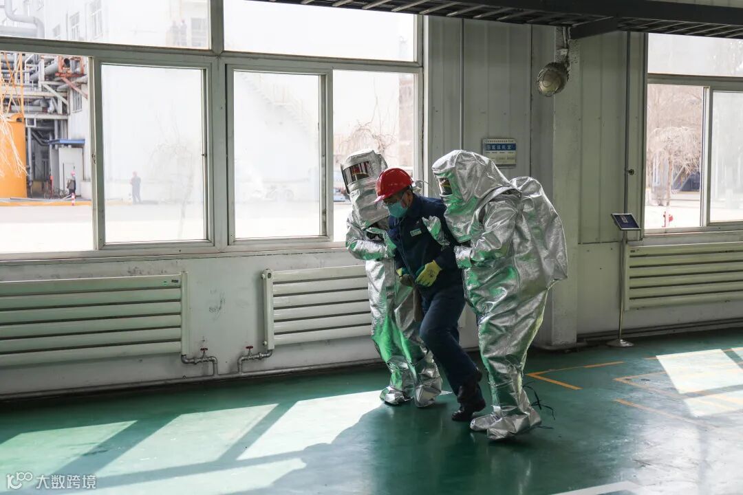 运工、外操立即穿戴好个人防护设备,准备前往火场救援伤员。操作间内操配合调整、拨打急救电话。