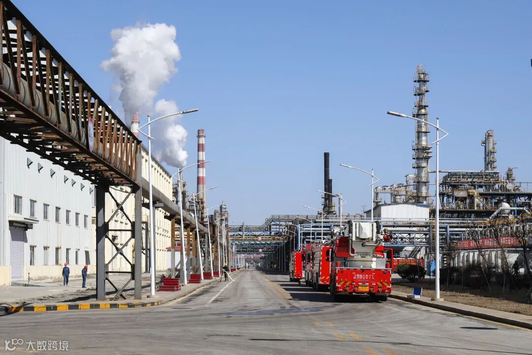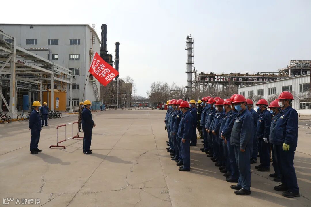 酮苯二车间应急演练模拟由于阀门垫片老化,造成装置溶剂泵(P-106/1)出口阀门垫片泄漏溶剂着火,造成一名员工中毒倒地,消防队伍到达现场后紧急灭火并使用消防水进行喷淋掩护,紧急切断泄露部位并进行抢修。期间启动三级防控系统控制环境污染。