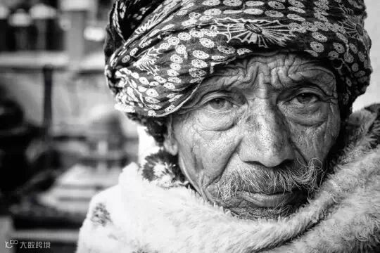 黑白照片对老年人脸上的纹路细节刻画深刻