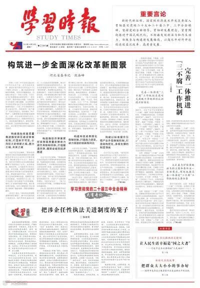 党的二十届三中全会审议通过的《中共中央关于进一步全面深化改革、推进中国式现代化的决定》(以下简称《决定》),矗立起改革开放新的里程碑,全面开启强国建设、民族复兴伟业又一次伟大变革。习近平总书记的重要讲话深刻回答了一系列方向性、根本性重大问题,为我们做好工作提供了根本遵循。河北坚持把学习宣传贯彻习近平总书记重要讲话精神和党的二十届三中全会精神作为重大政治任务,深刻领悟“两个确立”的决定性意义,坚决做到“两个维护”,完整准确全面贯彻新发展理念,以进一步全面深化改革为动力,找准落实的结合点,明确改革的发力点,谋划发展的撬动点,解放思想、奋发进取,加快建设经济强省、美丽河北,奋力谱写中国式现代化建设河北篇章。