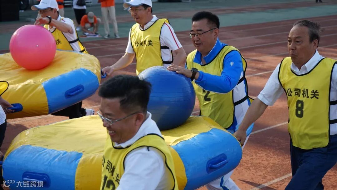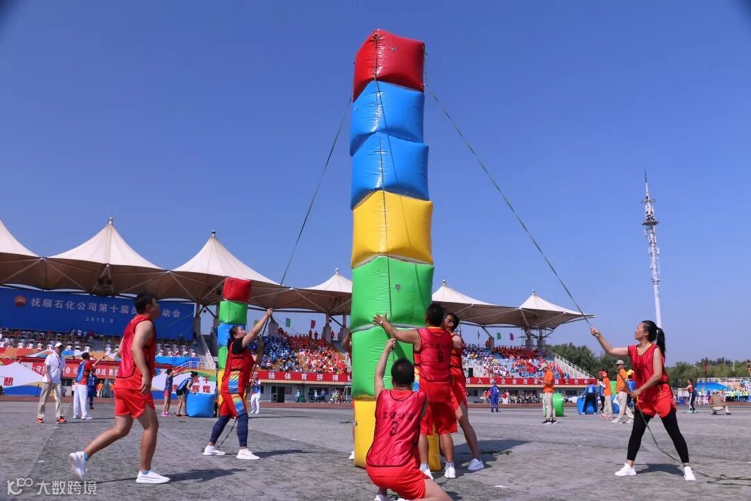 工建公司领导于臣义、武绍军、刘恒等人在趣味项目“众星捧月”中的矫健身影。