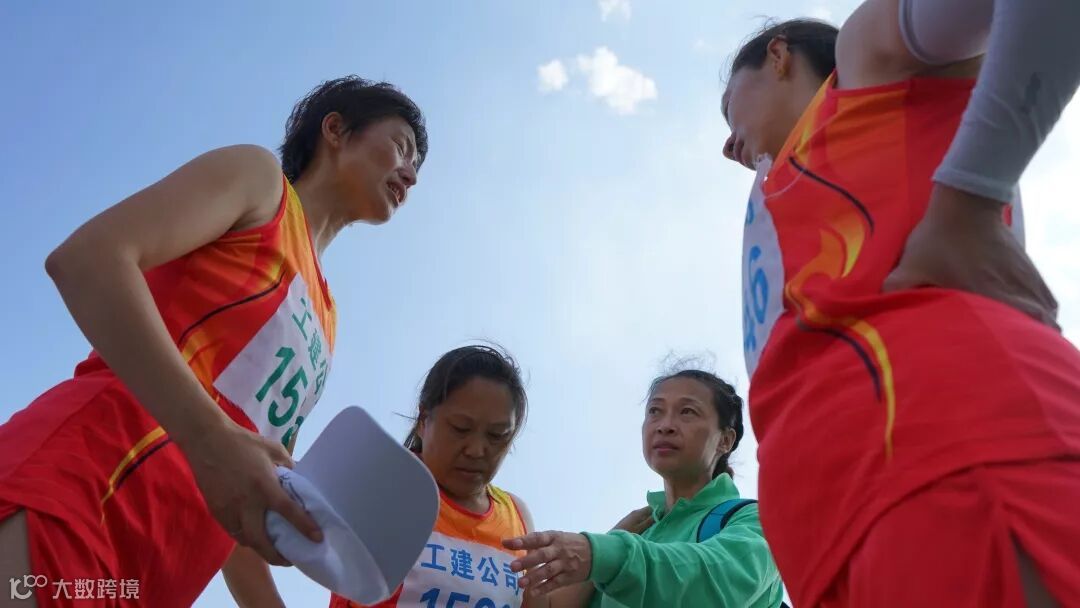 女子4×400米接力结束后,认真的队员们留在场地边总结比赛心得。