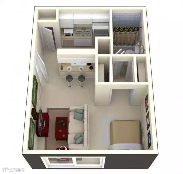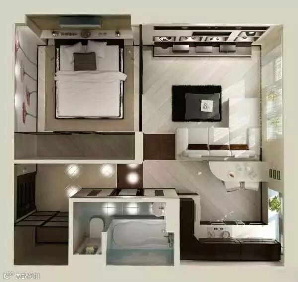 ↓↓↓ 这是另外一个30多平米的一居室设计