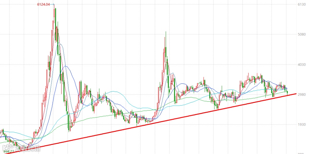 另一方面,从月K线来看,上证指数自2005年6月(998点)至今,已延伸出一条长期趋势线,目前该趋势线的支撑在2900-3000区间。从近几年的走势来看,该趋势线在2014年二季度、2018年12月、2020年一季度、2022年3月、2022年年底均发挥了重要作用。或许是市场底的形成过程中,潜藏着市场自身的规律,在此前屡次触及该趋势线时,有时候是政策的持续发力引发反弹,有时候是北上资金突然大举买入,也有时候是在没有利好的背景下指数突然见底反转。达里奥曾说:经济之所以像机器一样简单运行,是因为周期不仅是技术过程,背后是人性的轮回和宿命。这句话用来形容股市的运行也同样贴切,毕竟股市经常都是在大家意想不到的时候,突然就见顶或见底了。