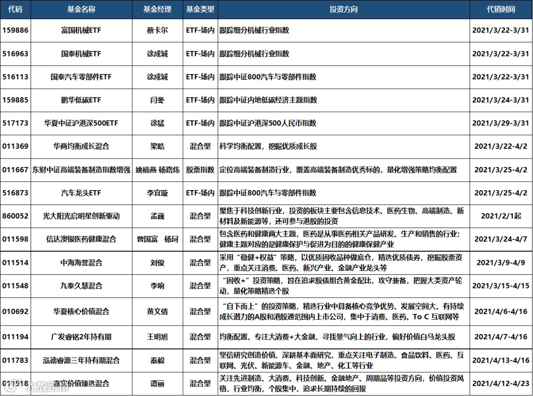 近期光大证券部分代销基金:
