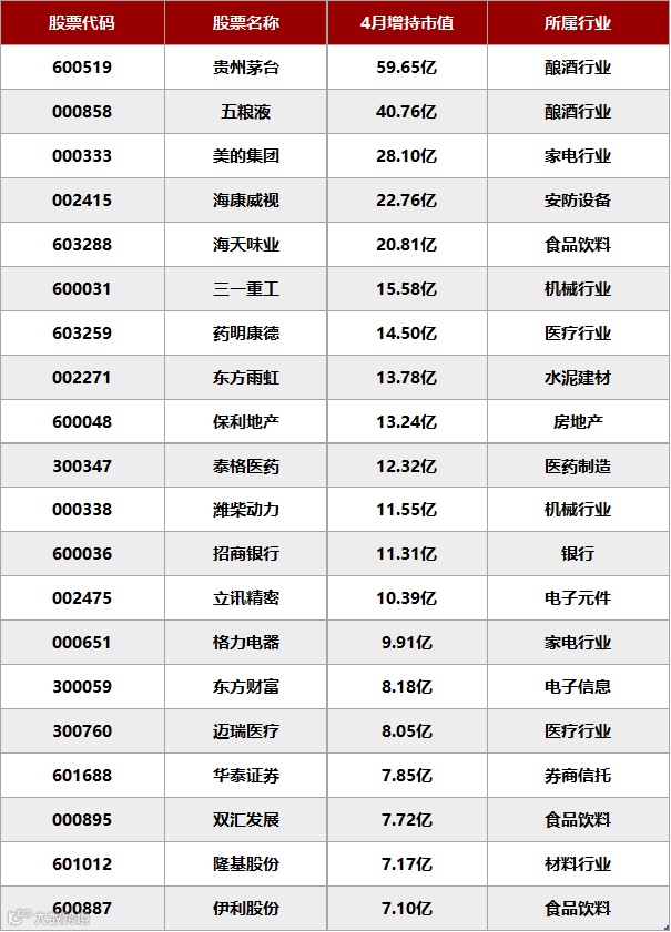 4月陆股通增持排行榜(按流通股持股比例同比增幅)