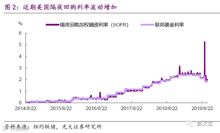 第二、发达国家经济体实行负利率的范围扩大、程度增加,甚至有人担心美国是下一个负利率国家, 但最近美国的回购利率波动却不降反升(图 2)。这又是为什么?现在美联储购买短期国债意味着央行扩表,官方说这是正常的货币政策操作,但部分市场人士认为这是量化宽松。我们应该如何理解央行扩表和量化宽松的关系, 其对利率和经济有什么影响,对中国维护正常货币政策空间有什么参考意义?