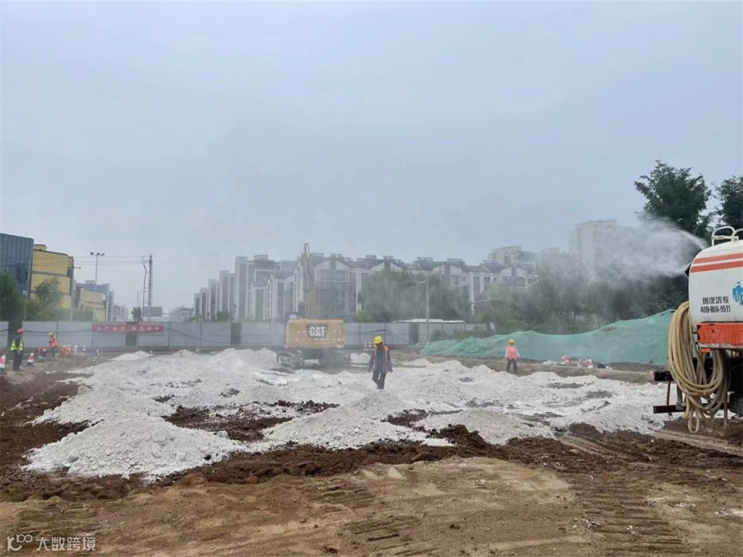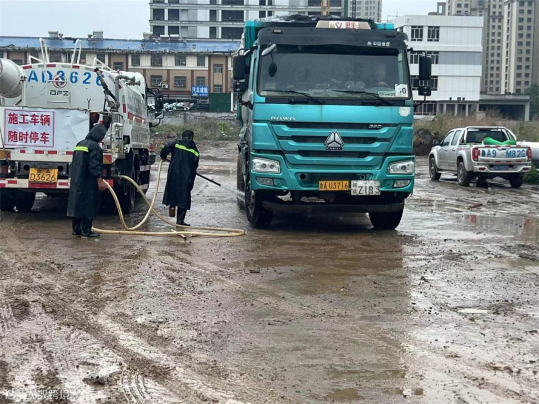 因项目现场距离居民区较近,施工前期涉及机械整平、开挖,土方及原材的运输、堆放,环保压力较大。项目部采取湿法作业,水车、雾炮全过程开启,降低扬尘。车辆出场必须清洗轮胎、车身,杜绝带尘上路。