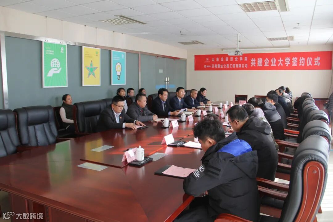 1月8日,公司举行通达学院揭牌暨共建企业大学签约仪式。山东交通职业学院党委书记陈继梦、宣传部部长牟海林、科员魏茜 ,以及公路与建筑系党总支书记刘芹、系主任卞贵建、副主任荣文涛、实训中心主任尹斌、系党总支组织员孙晓明及第三党支部统战委员肖璇参加活动。