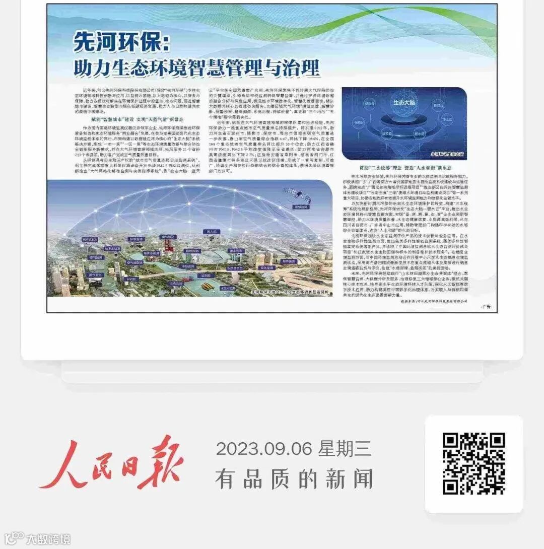 近日,人民日报接连刊登文章《先河环保:助力生态环境智慧管理与治理》《先河环保:开发智能化环境管理新技术》,对先河环保在生态环境领域的智慧管理与治理措施进行深入报道。文中提到,先河环保助力构建美丽中国数字化治理体系,为实现人与自然和谐共生的现代化生态愿景贡献力量。