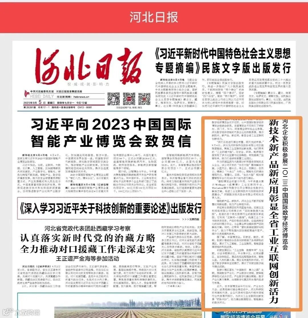 石家庄日报对先河环保在数字化浪潮中的创新之举进行报道。报道中提到:先河环保“开辟新蓝海,‘六朵云构建生态大脑颇受关注。此外,新成果“工业环境大脑”为安全节能降碳、降本提质增效提供科学精准高效的管控手段。