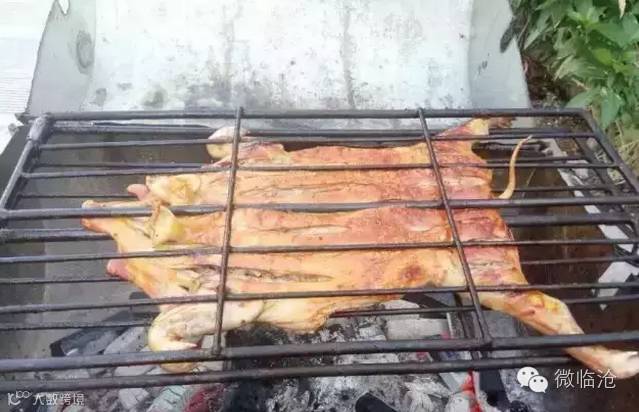 制作过程:以上好鲜嫩的小香猪为原料,用配好的材料腌制半小时,然后放炭火上烤,边烤边用小刀划开,烤熟后颜色金黄鲜红,香味扑鼻,走俏餐桌。
