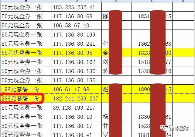 一等奖“298元套餐一份”已抽出,但是可惜的是这位网友并未填写他的联系方式,从IP地址上看是不是距离太远了?从而放弃了免费吃,不管了!就按照其他奖项联系方式一一兑奖了!
