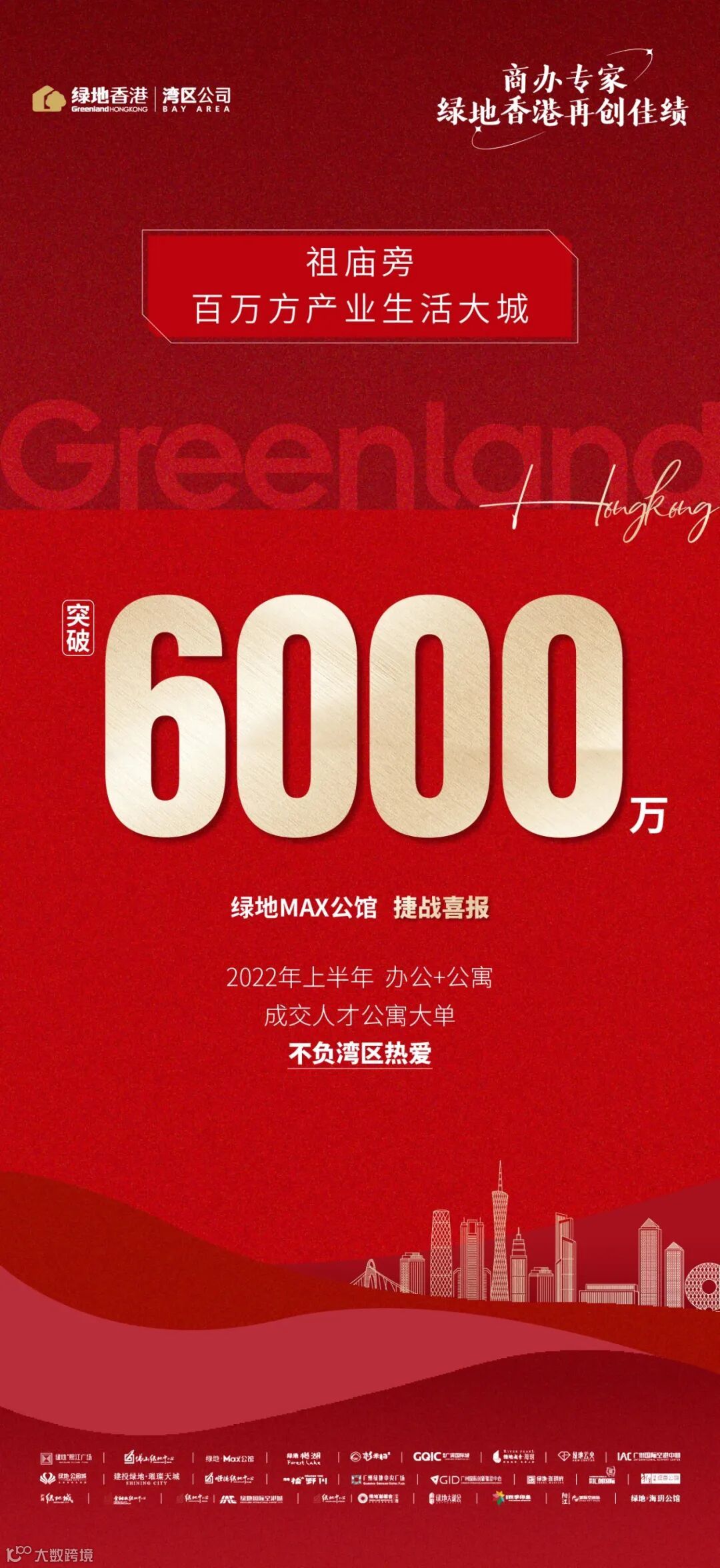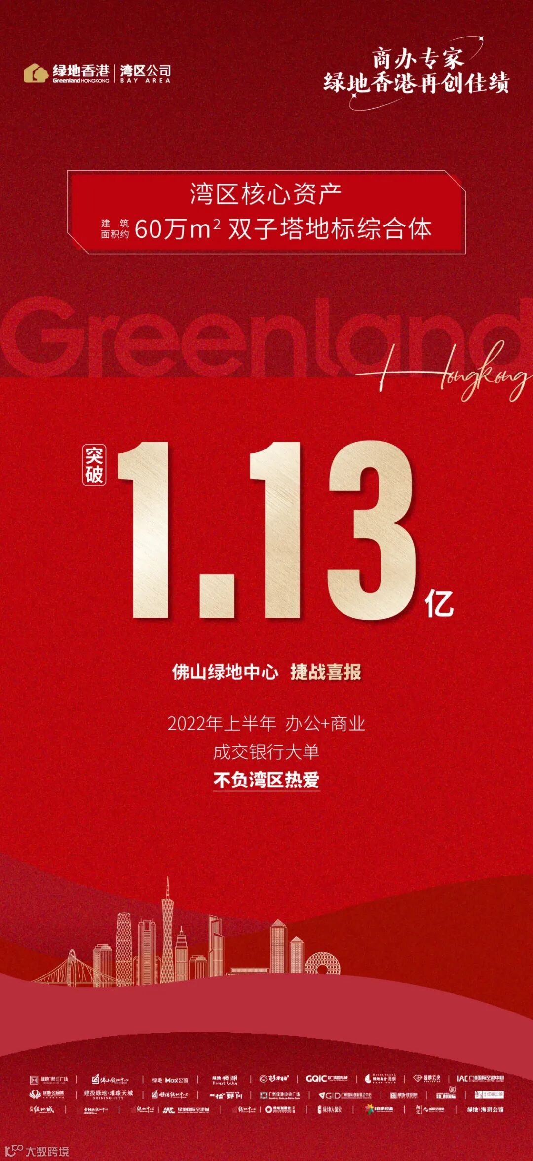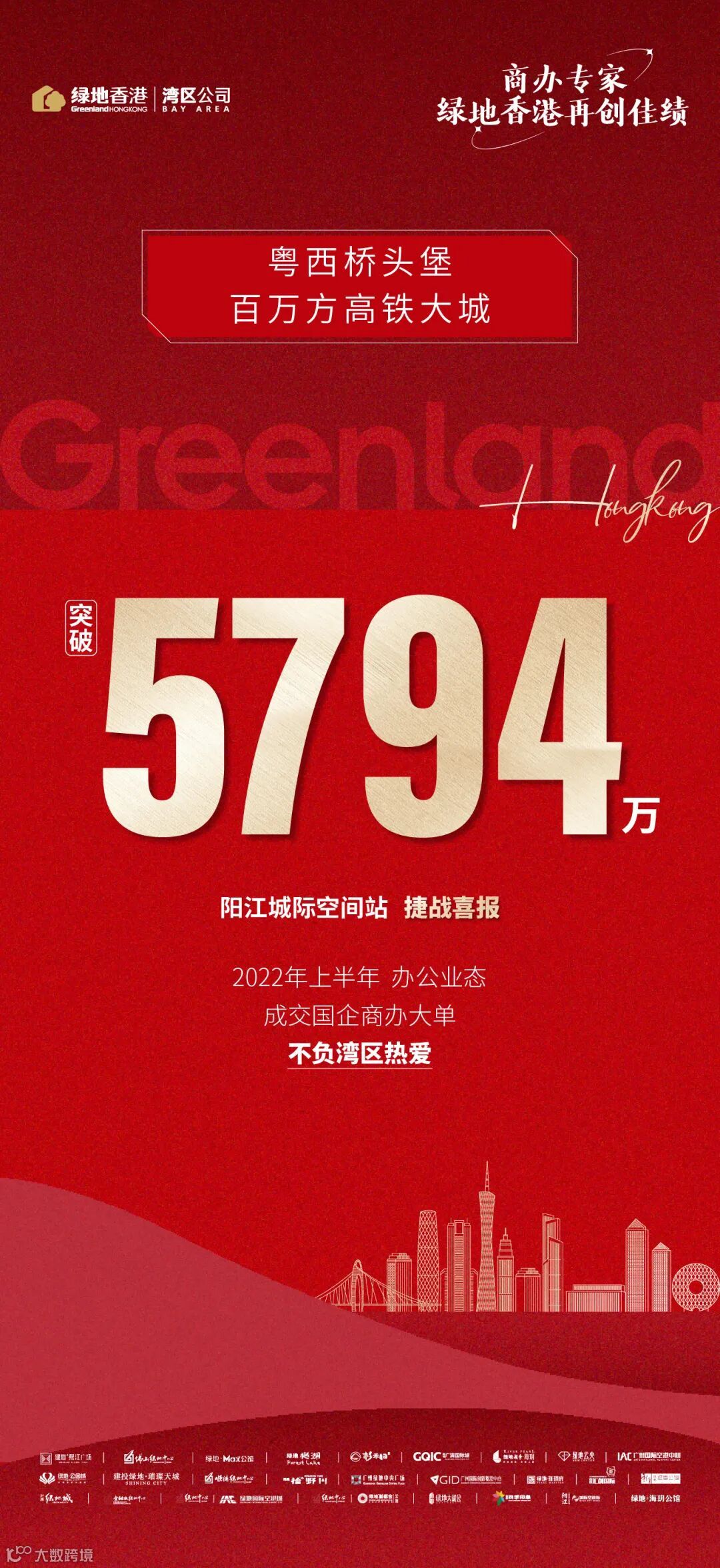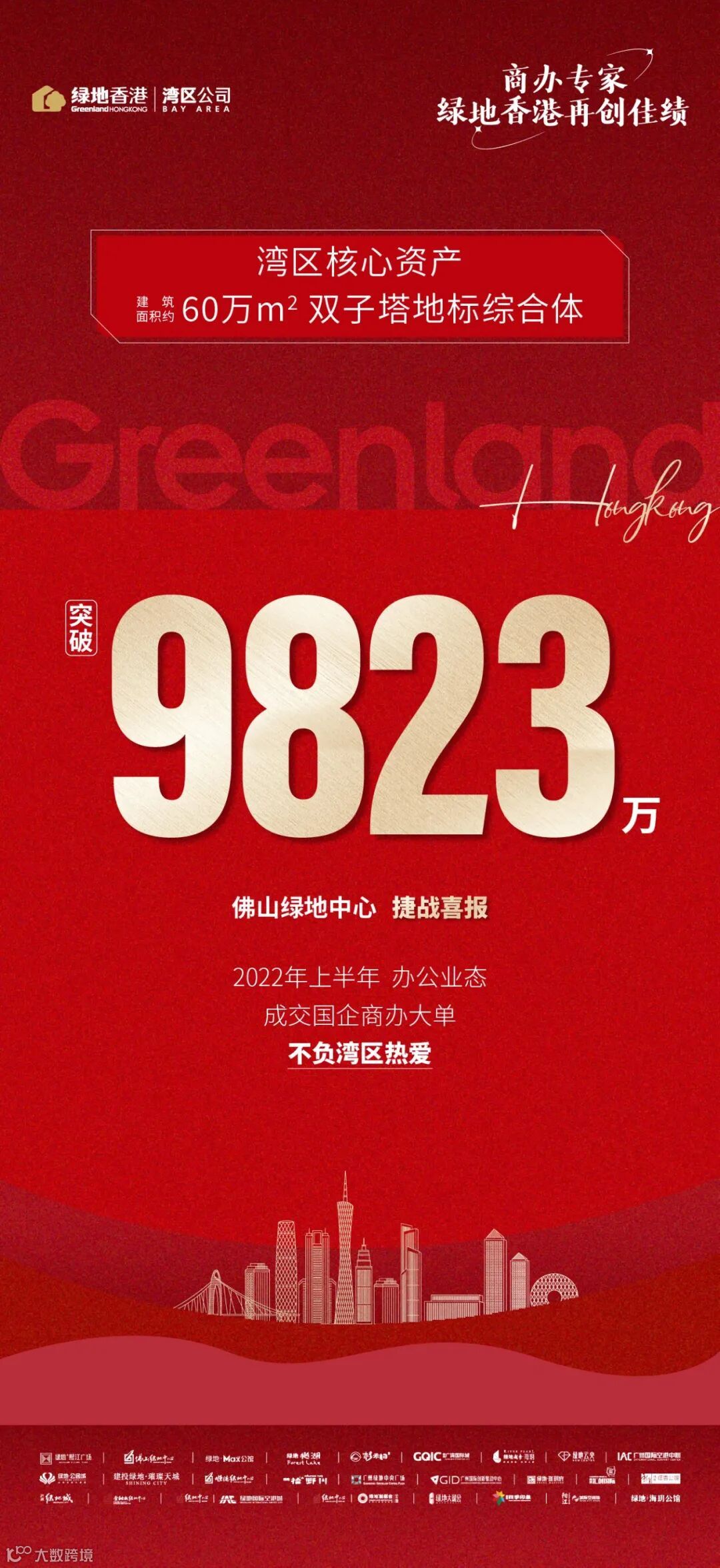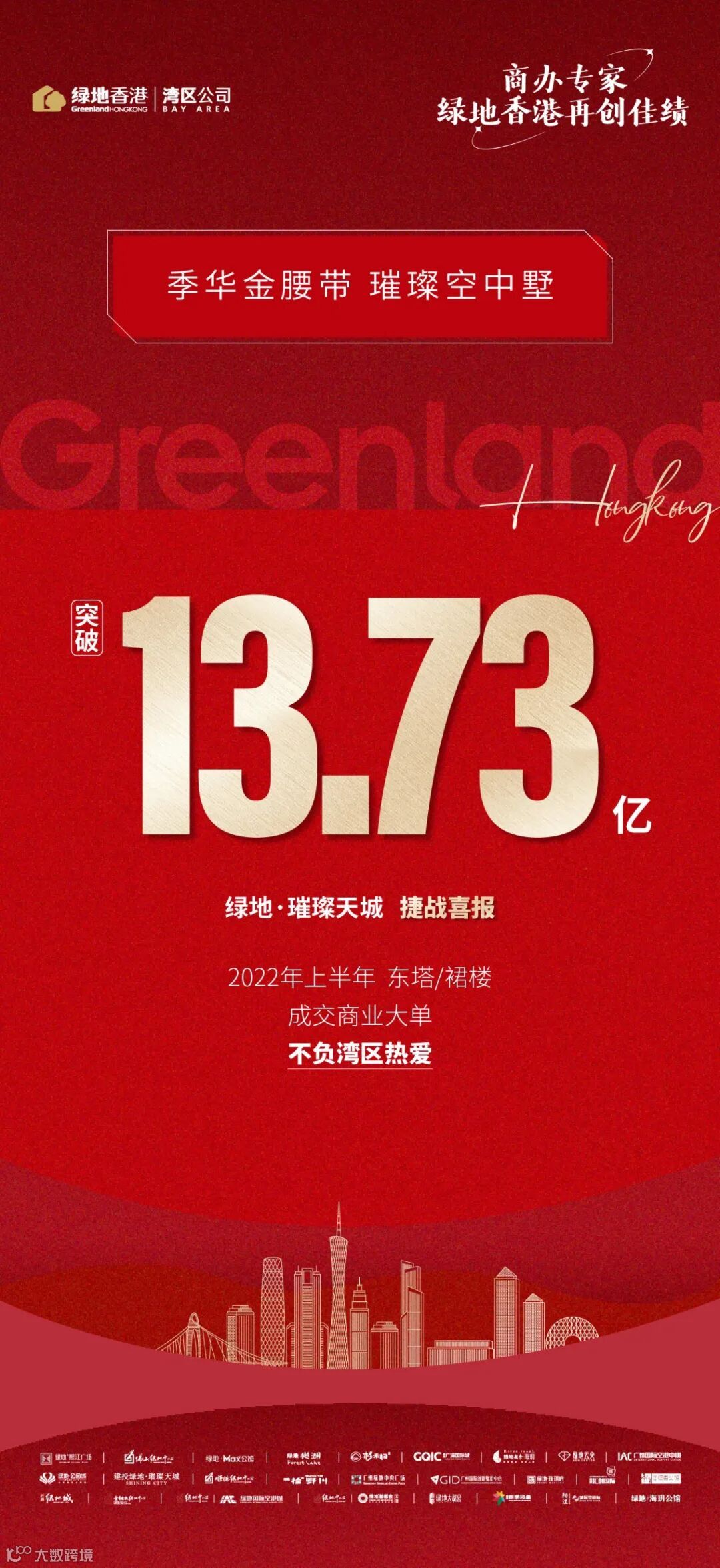 蓬勃湾区欣欣向荣,2022年上半年,绿地香港湾区公司再创佳绩,狂揽6笔商办大单,收金突破17亿!