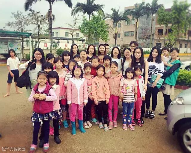 (老师刚下车,孩子们就冒着蒙蒙细雨围了过来!)