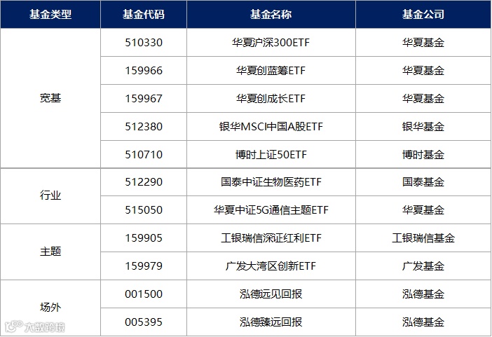 重要说明:因篇幅有限,本表格仅仅列举部分公募基金,并不代表任何配置建议。