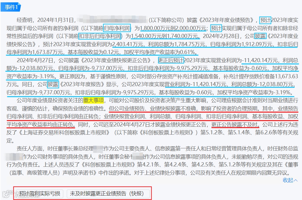 在更正公告中披露导致业绩预告或业绩快报更正的具体情形以及所涉及金额,并说明导致更正的原因是否已在原业绩预告或业绩快报公告中进行充分风险提示。 |