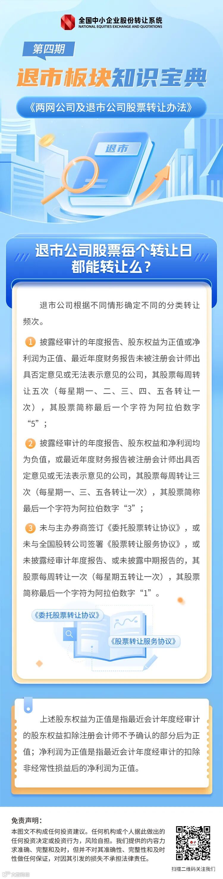 常态化退市机制是保障资本市场良性运行的关键,为深化投资者对退市板块的理解与认识,在2024年金融宣传月期间,我们特推出“退市板块知识宝典”系列图文,从上市公司退市后相关安排、退市公司股票转让规则、退市可转债管理等方面,向投资者普及上市公司退市后的基础知识。本期介绍退市公股票转让相关安排,快来一起了解一下吧!