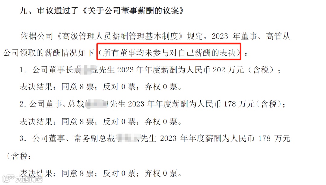也有的将审议薪酬事项的议案根据董事人数分拆成多个子议案,董事只在审议自己的薪酬时进行回避,其他不回避。