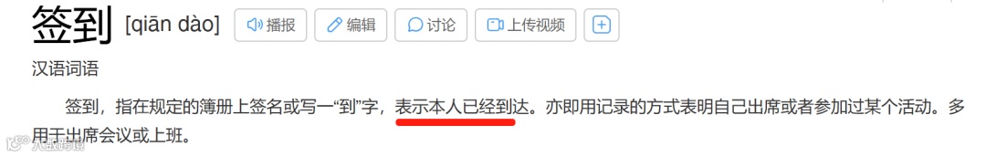 查了一下百度百科,签到表示本人已经到达。