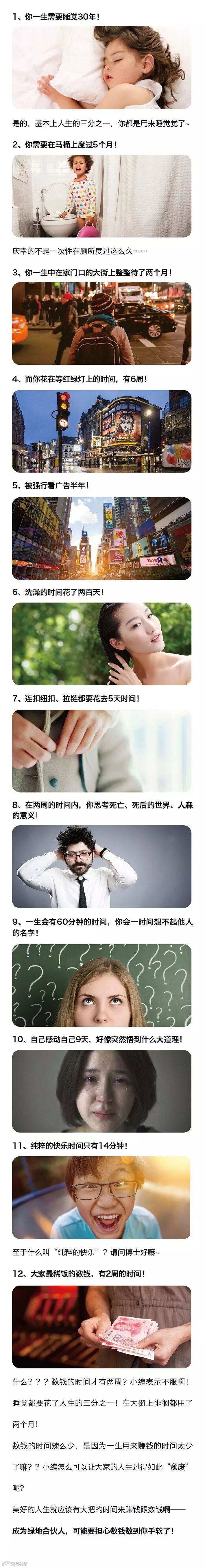 导读:你一生需要睡觉30年,马桶上度过5个月,洗澡花掉200天……