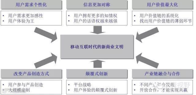 与工业时代相比,移动互联时代的组织所处环境已经发生巨大变化(图一),而且变化速度极快。从用户角度来看,消费者从未像现在一样拥有这么多信息和选择,过去企业凭借强势营销、垄断渠道和信息不对称等赢得用户的方式已经不再奏效,唯有在产品能力和用户体验上下工夫才能制胜。正如亚马逊创始人兼首席执行官杰夫・贝佐斯曾经说过的:“以前,人们会花30%的时间打造优质服务,70%的时间大张旗鼓地宣传。但现在,情况正好相反。”