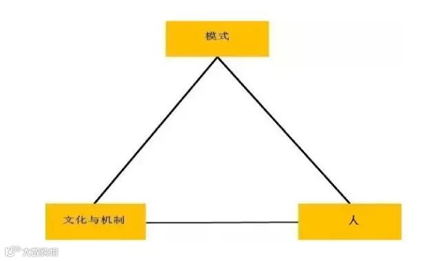 如何打造移动互联时代的理想组织?笔者认为,企业必须从模式、文化与机制以及人三个方面着手,构建起稳固的“铁三角”(图二):