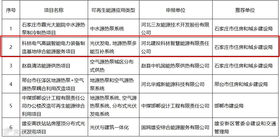 近日,河北省住房和城乡建设厅公布了《关于推广可再生能源建筑应用典型案例(2023年第一批)的通知》,科林电气高端智能电力装备制造基地可再生能源综合利用项目成功入选,为全国智慧园区能源系统建设和管理提供了可复制、可推广的借鉴经验,突出体现了公司在绿色能源利用和管理方面的领先优势。
