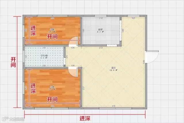 进深和开间是指住宅的实际长宽,一般根据房门朝向来区分,进入房门方向的垂直距离为进深,左右两边垂直距离为开间,测量的标准是指房间内一面墙皮到另一面墙皮之间的实际距离。