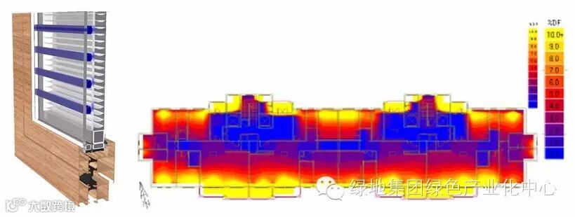 可调节外遮阳装置及采光模拟图